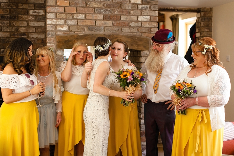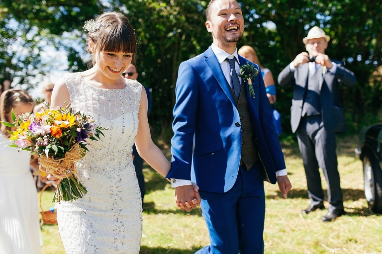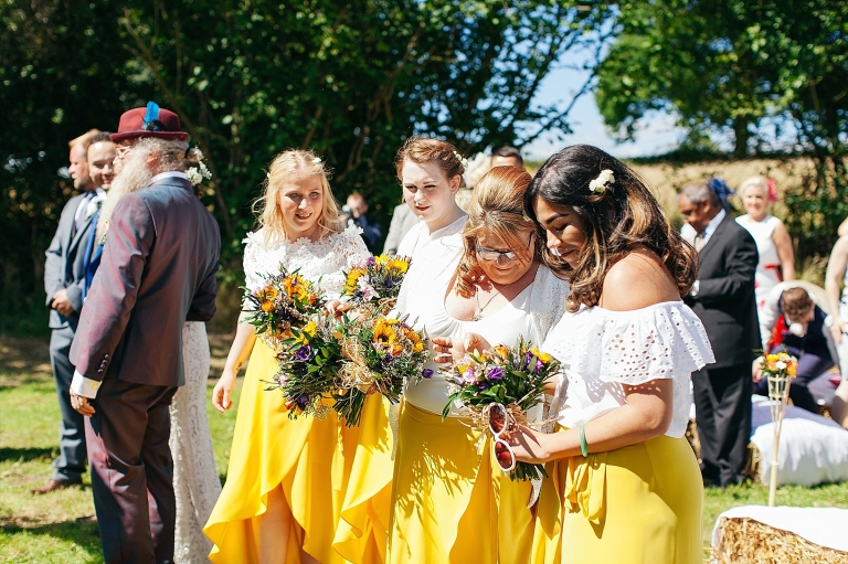 In August we travelled to sunny (!) Wales for Poppy and Mark’s festival themed wedding. The whole family are avid Glastonbury fans, Poppy’s parents have been going since it started, it’s where Mark had his stag do. The wedding day was beautiful and as always the people who were there made it, we’ll let the images speak for themselves. We’ve included the slideshow, because we feel it captures the heart of this country wedding.